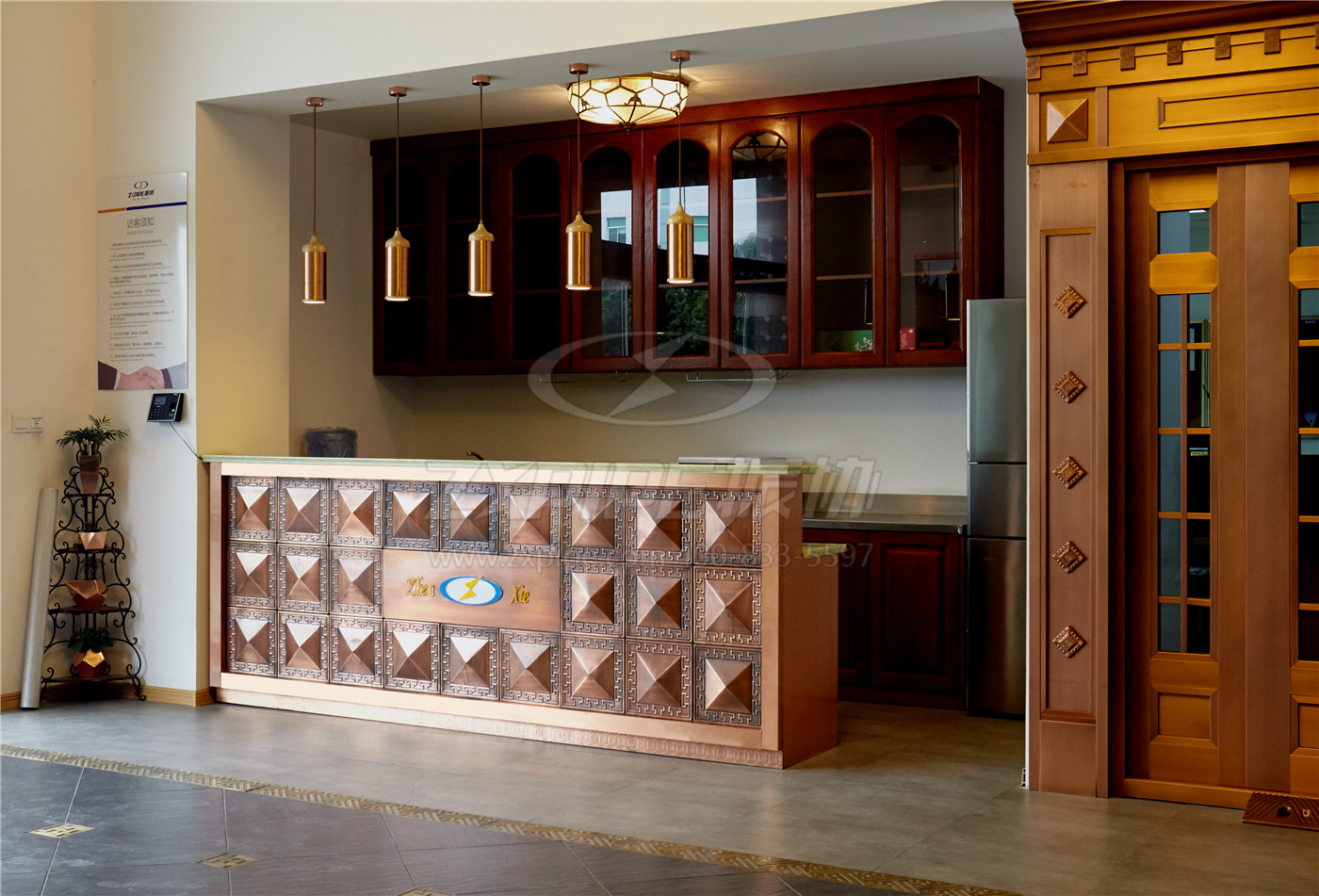 前台铜木吊灯