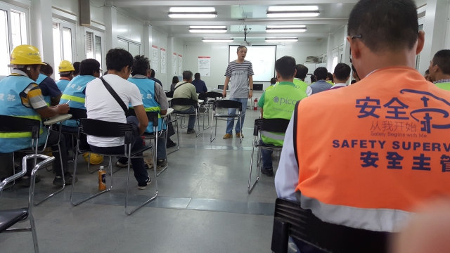 施工现场登高必须佩带安全带,确保安全设施都齐全后才能进行高空作业。为提高安全意识,振协集团开展了高空作业安全培训,主要内容有安全带的正确使用以及高空作业需要注意的安全问题。开展培训的目的不仅在于传授安全技能,更为重要的是时时刻刻提高员工的安全意识。